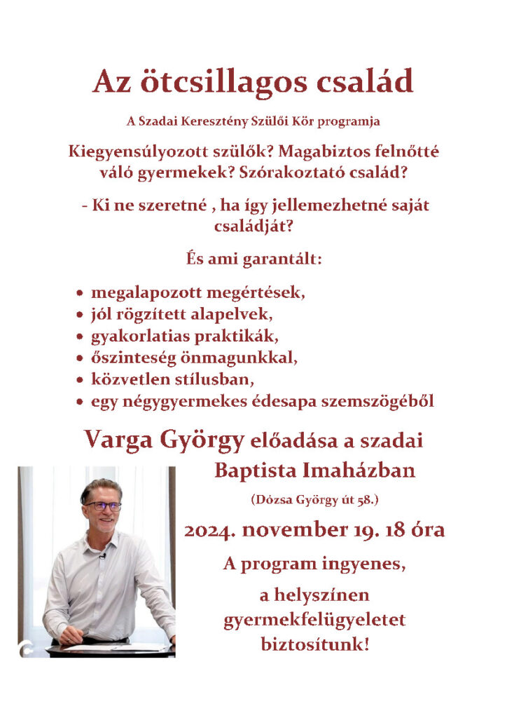 Andras2024-11-17 01:46:072024-11-17 01:46:07„Az ötcsillagos család” – Varga György előadása a szadai Baptista imaházban