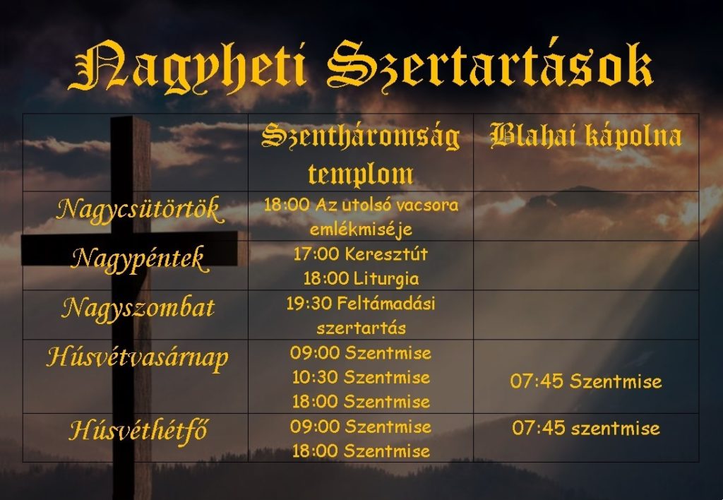 Nagypéntek: 17:00 Keresztút, utána liturgia