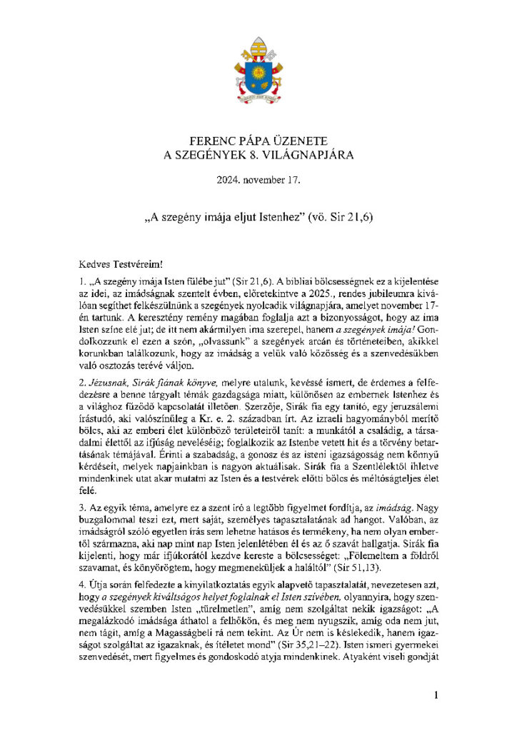 Szegények Világnapja – Ferenc pápa üzenete