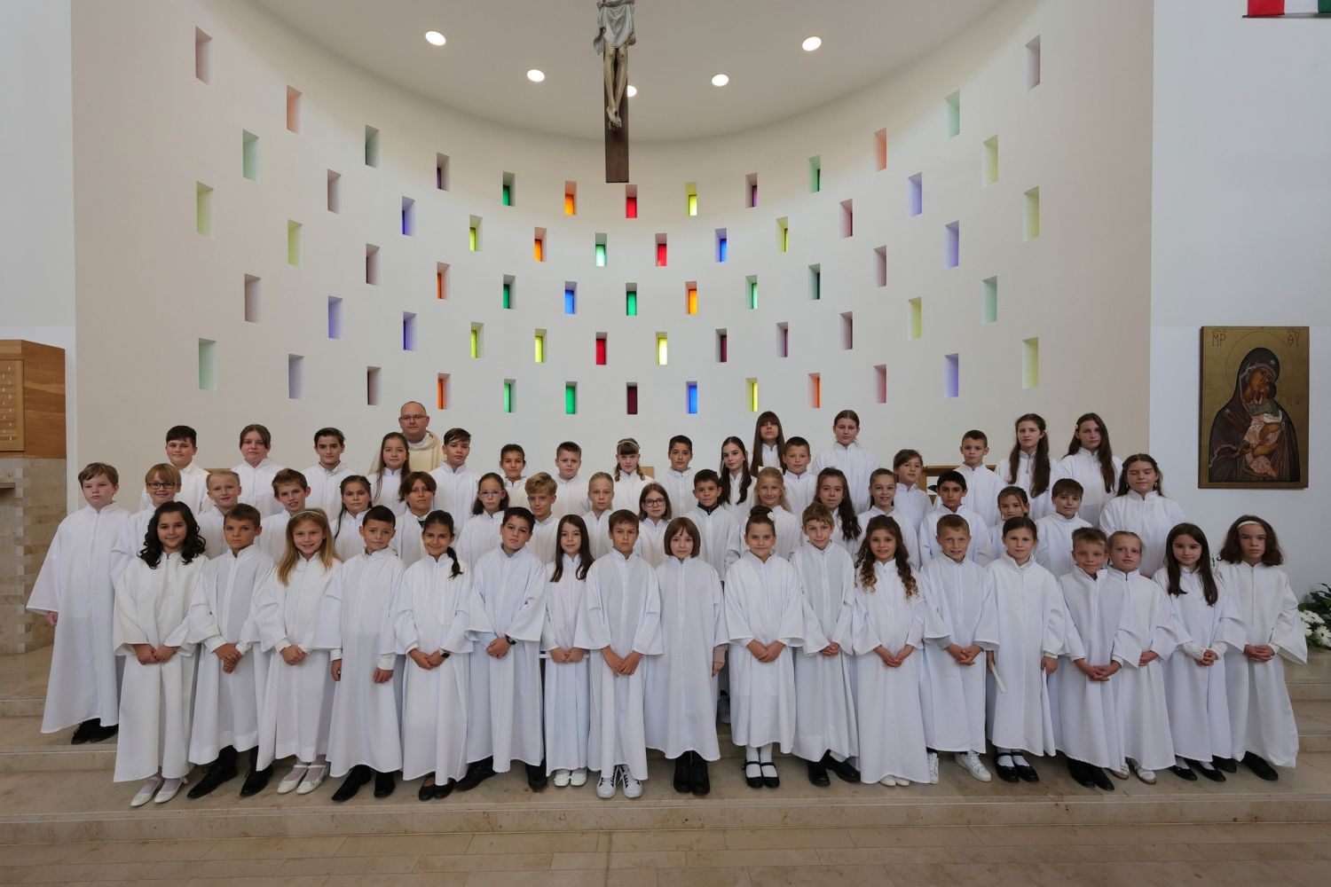 Az elmúlt vasárnap (szeptember 29-én) fiatal testvéreink először találkoztak az Oltáriszentségben jelen lévő Krisztussal. Mindannyiuk arcán az látszott, hogy igazán vágytak erre a találkozásra, de ahogy a prédikációban is hallottuk, csak ők tudják, hogy milyen ajándékot kaptak Jézustól. Adjunk értük hálát Istennek! További képek