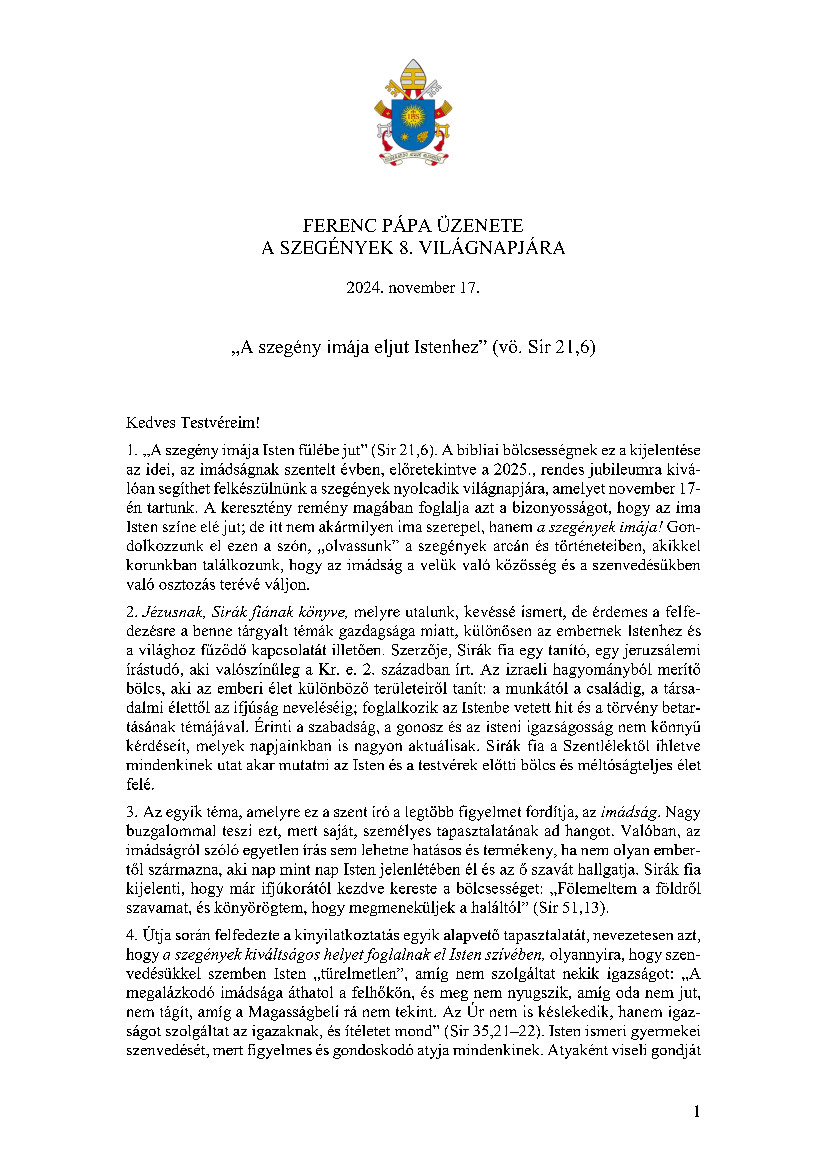Szent Erzsébet napi körlevél 2024 – Püspöki Konferencia üzenete