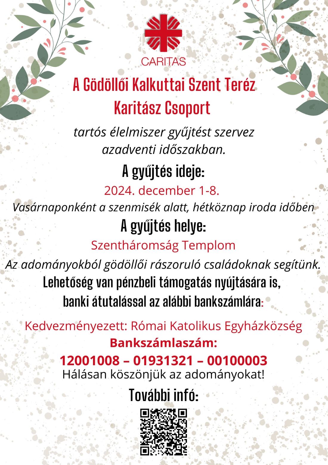 Adventi tartósélelmiszer gyűjtés – Kalkuttai Szent Teréz Karitász csoport