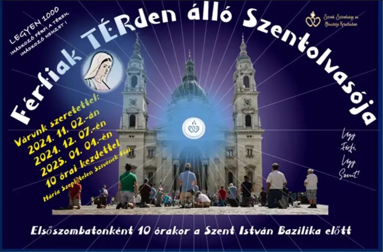 Minden hónap első szombatján rózsafűzér imádságra hívják a férfiakat Budapesten a Szent István Bazilika elé.