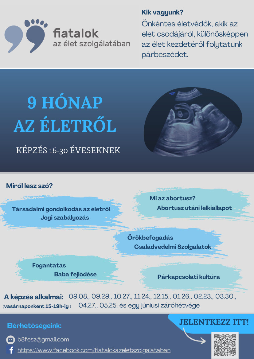Fiatalok az Élet Szolgálatában közösség életvédő képzést indít szeptember 8-tól Budapesten