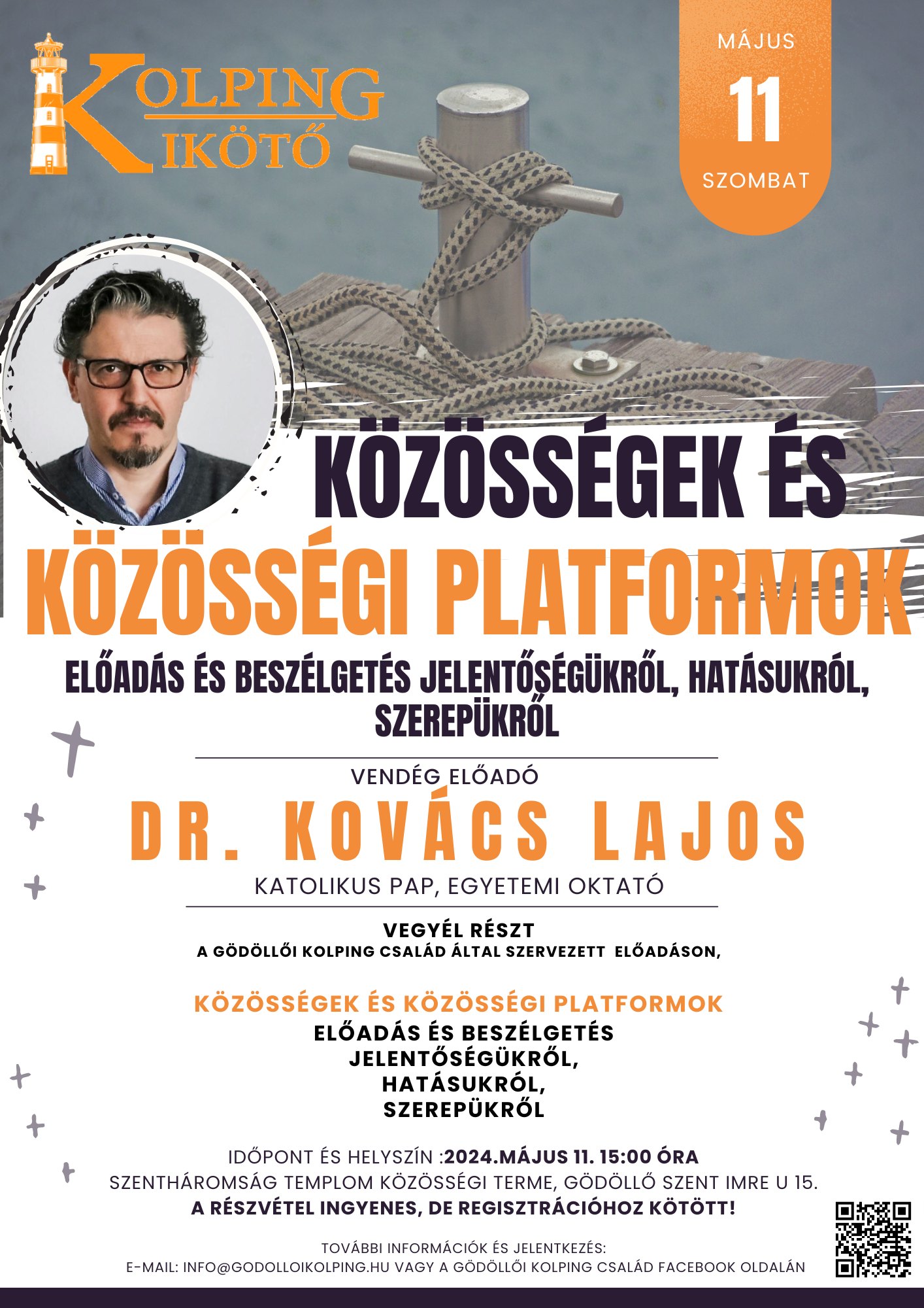 A Kolping Kikötő következő előadására május 11-én, délután 3 órakor kerül sor a közösségi házban. A téma a család minden tagjának szól: Közösségek és közösségi platformok, előadó Dr. Kovács Lajos atya. Szeretettel várnak mindenkit a szervezők. Esemény honlapja